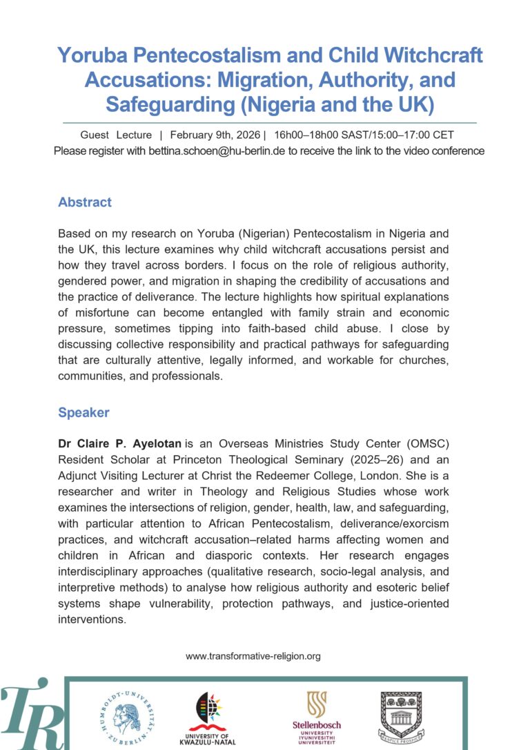 The lecture examines the role of religious authority, gendered power relations, and migration in shaping the credibility of such accusations and the practice of deliverance. It highlights how spiritual interpretations of misfortune can become entangled with family tensions and economic pressures, sometimes escalating into forms of faith-based child abuse.